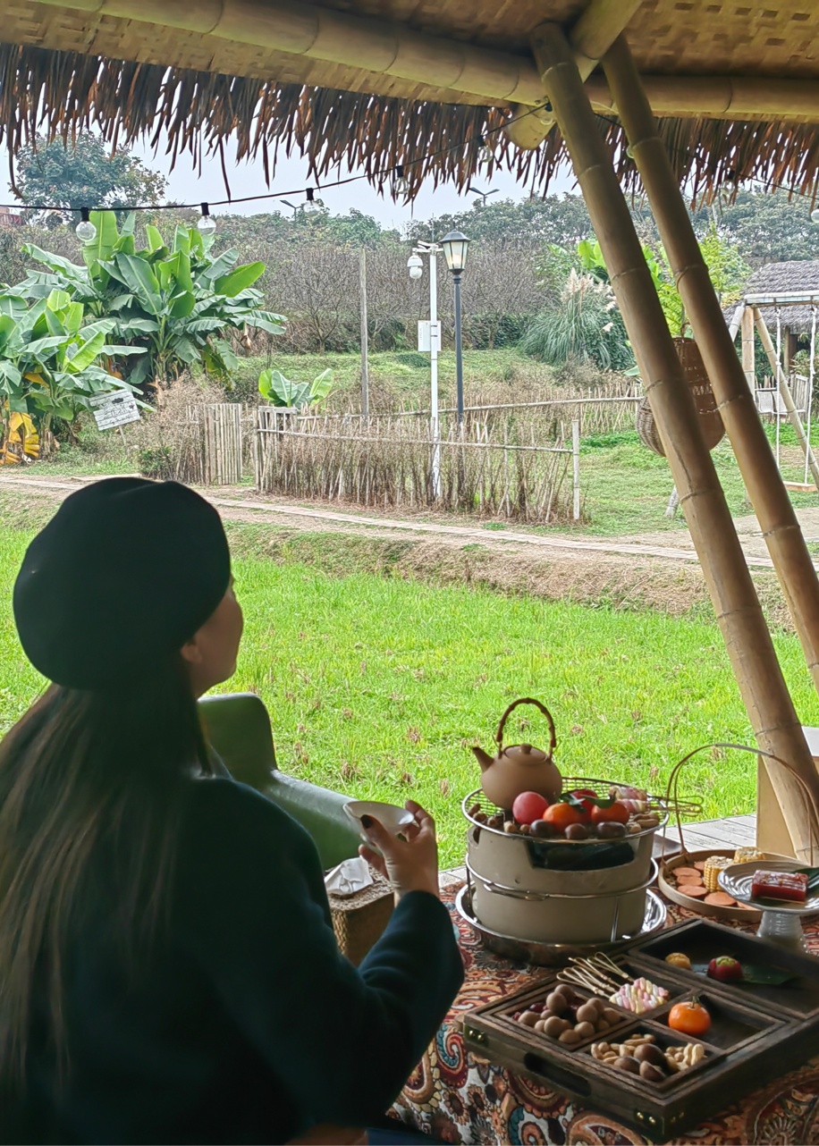 茉莉花园坐落在云朵乐园的制高点,并拥有270°弧形圆环开放视野,以luxe cafe下午茶、厨艺教学、派对活动为一体的综合性体验空间。虽是派对热地,“围炉风”一来的时候,完全不能“幸免”。