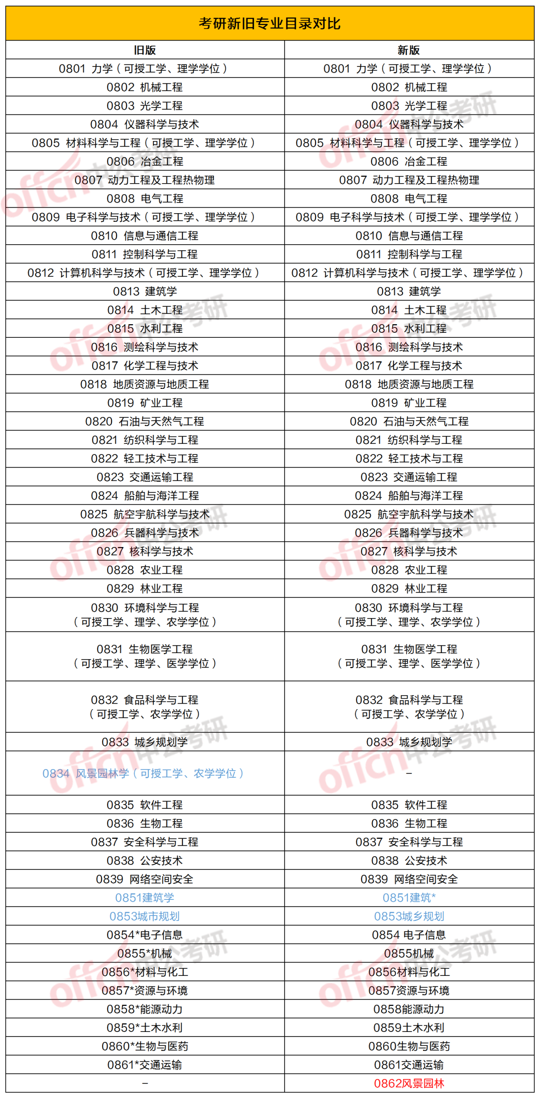 撤销一级学科0834风景园林学,增设风景园林(0862)专业学位。原建筑学(0851)更名为建筑(0851);原城市规划(0853)更名为城乡规划(0853).。