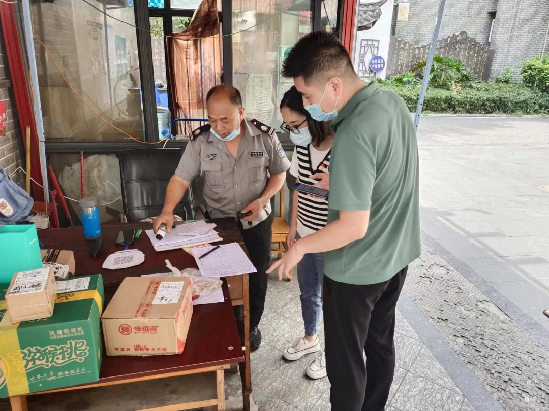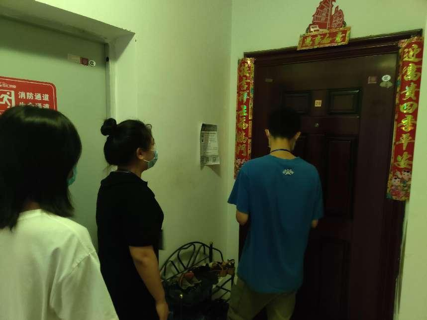 市民政局党员干部协助社区做好居家监测、人员排查等工作。
