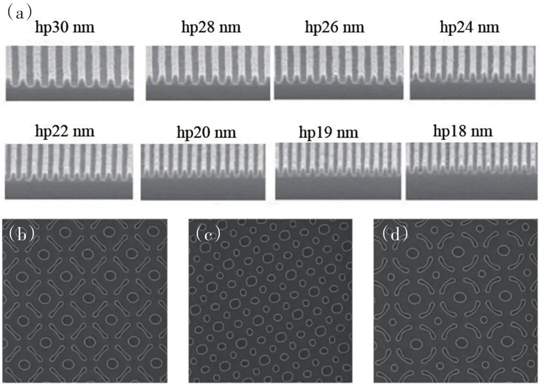 日本NuflareEBM-9500PLUS加工能力(a)利用EBM-9500PLUS加工的30~18 nm半周期光栅结构;(b)~(d)利用EBM-9500PLUS加工的逆向光刻技术(ILT)掩模图案