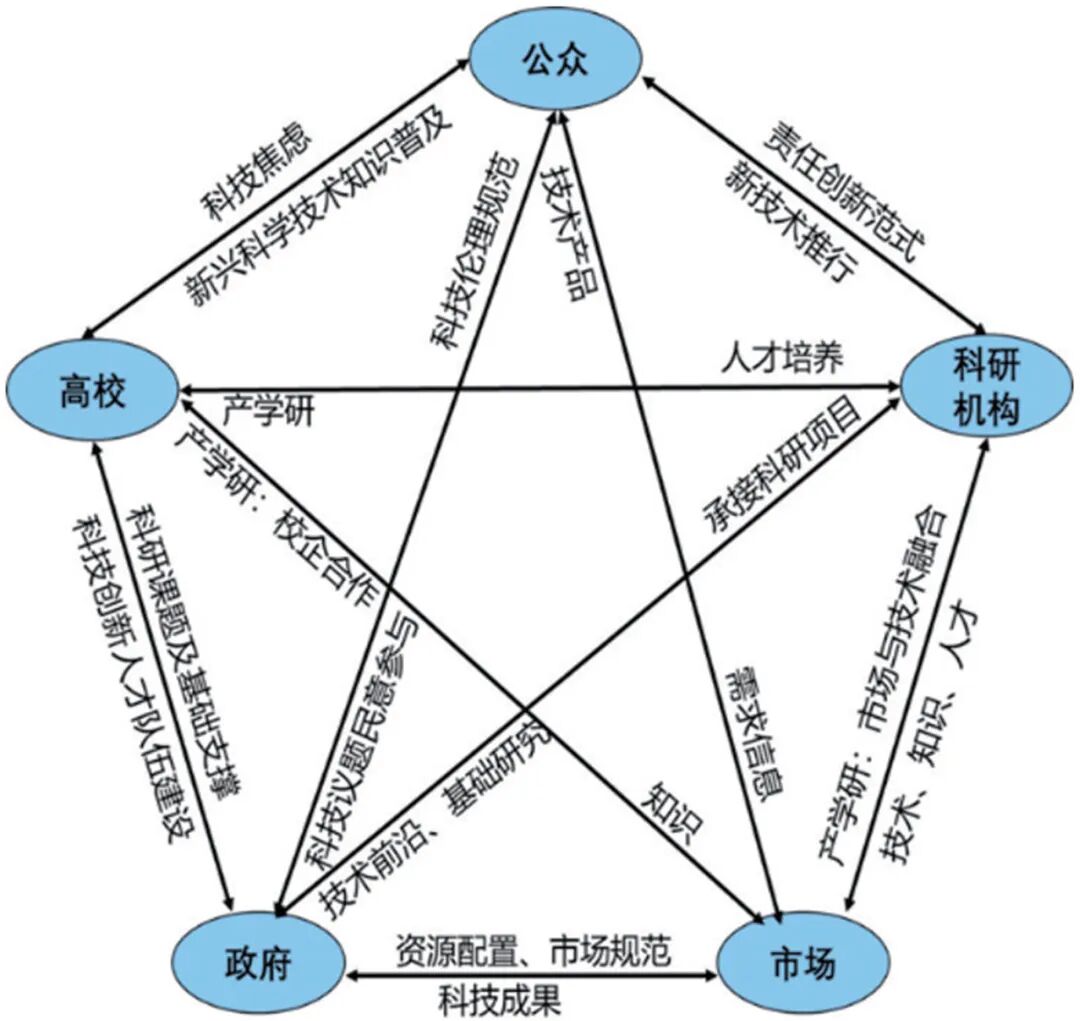 中国情境下的科技创新治理包含社会参与,是一种在政府宏观指导下,运用多主体、多层级、多中心、网络式的治理理念和方法引导多元主体共同参与公共科学事务管理的过程,旨在提高创新效率,降低创新成本,促进科技创新与社会、经济等方面的协同发展,从传统科技管理向科技创新治理的过渡是我国对各要素之间关系的理性思考与柔性重构。