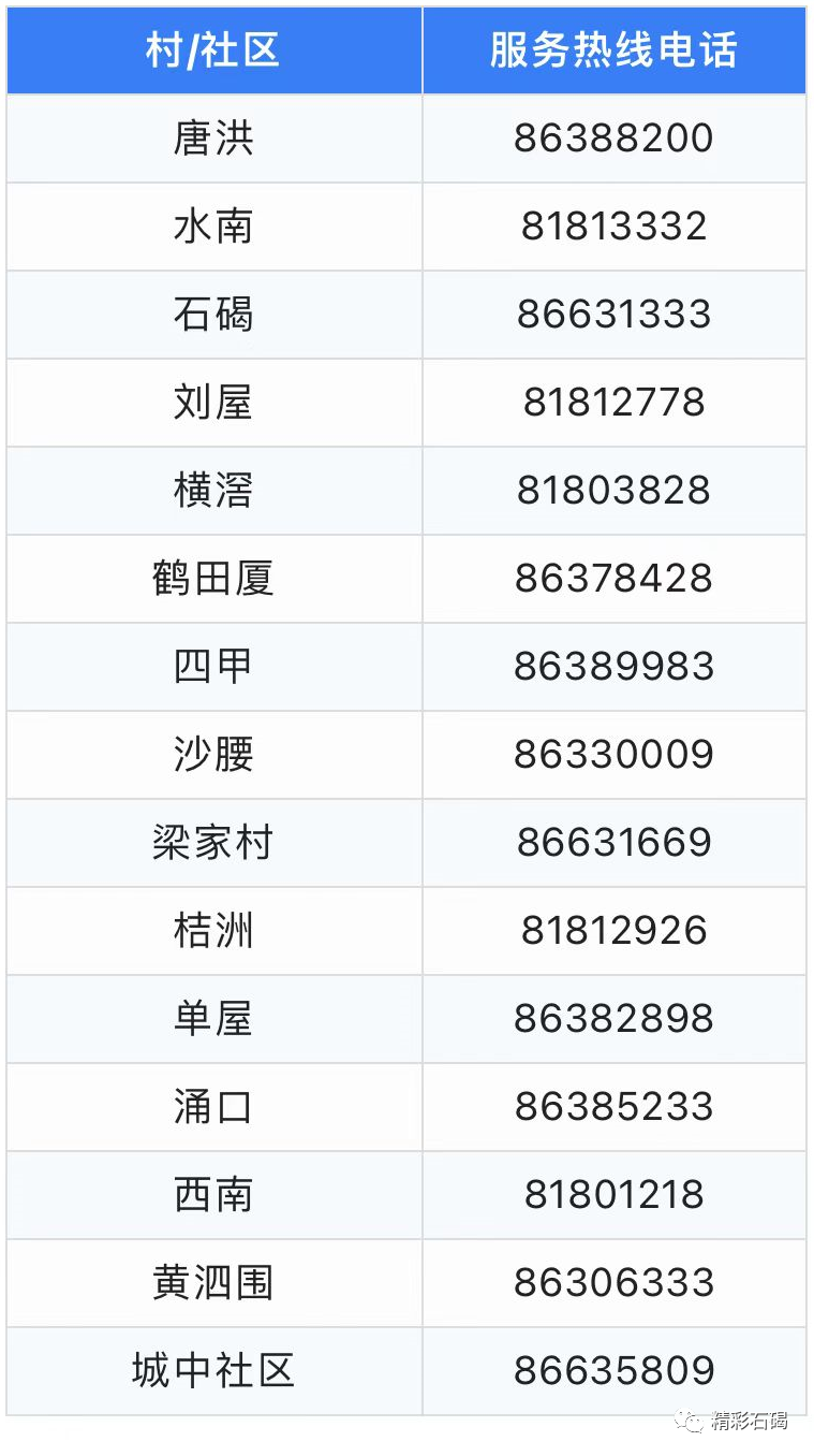 24小时服务热线电话表