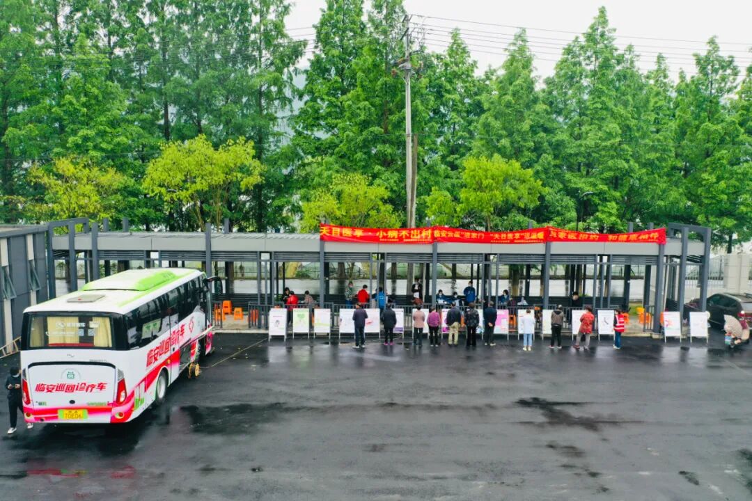 ▲临安区锦城街道社区卫生服务中心的巡回诊疗车开到新溪桥村