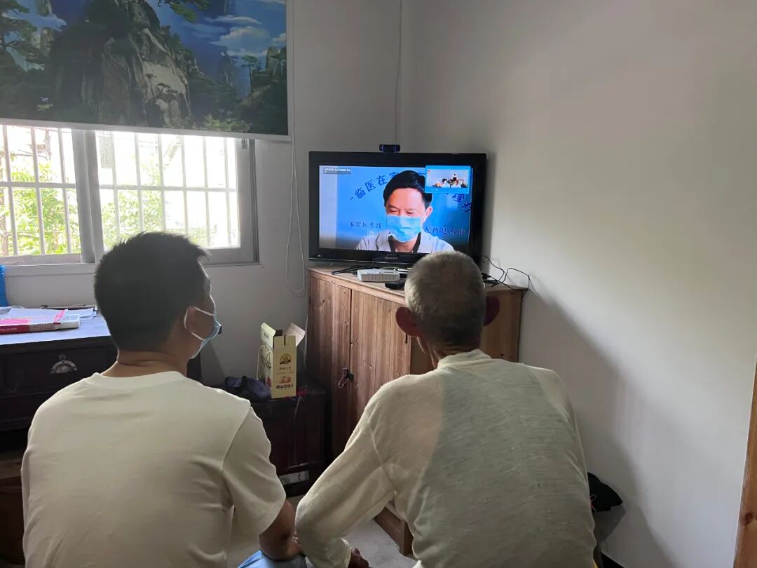 ▲龙岗镇龙井村村民刘大爷在家通过“临医在家”可视化诊疗平台就医
