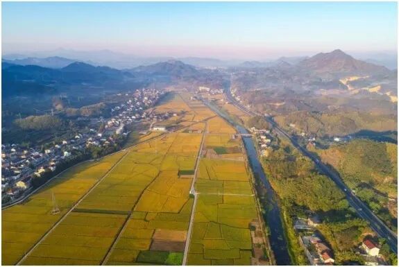 ▲ 天目山镇“天目粮仓”层层叠叠的稻穗蔓延成一片金色的海洋
