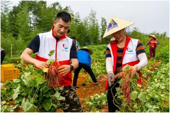 ▲ 玲珑街道“新农人”正在采收小香薯
