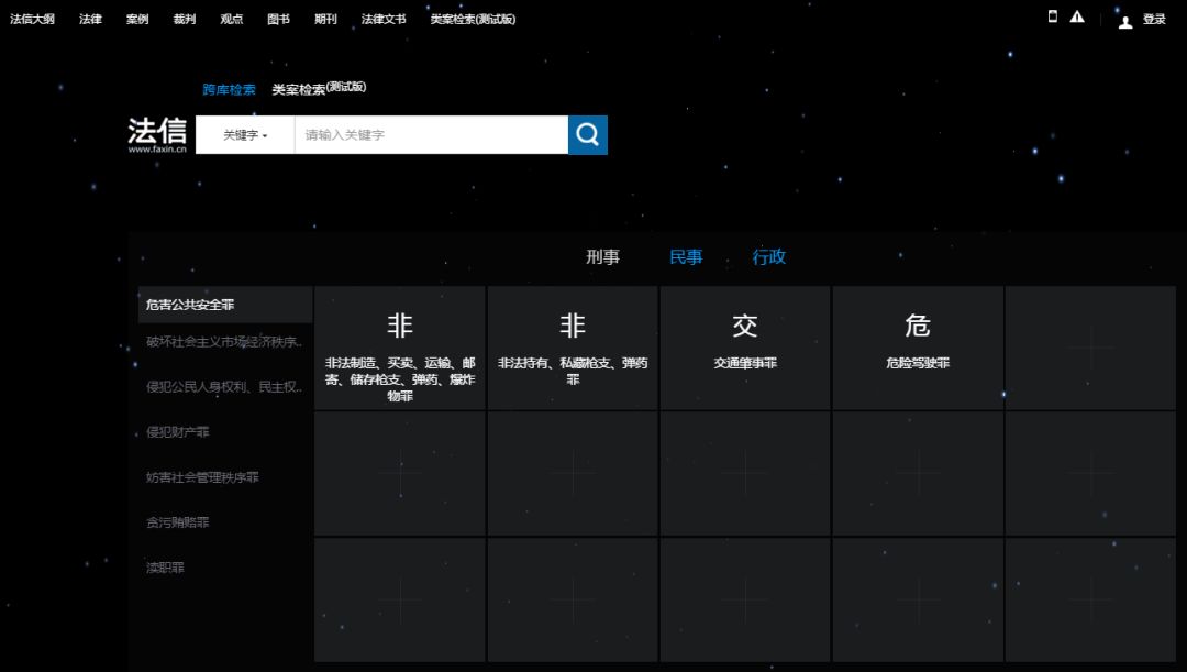 张法官决定先从案由入手,点击“抢劫罪-侵犯财产罪”。这时直接跳转进入到该案由的主页面,类案维度和关键词体系一目了然地呈现眼前。