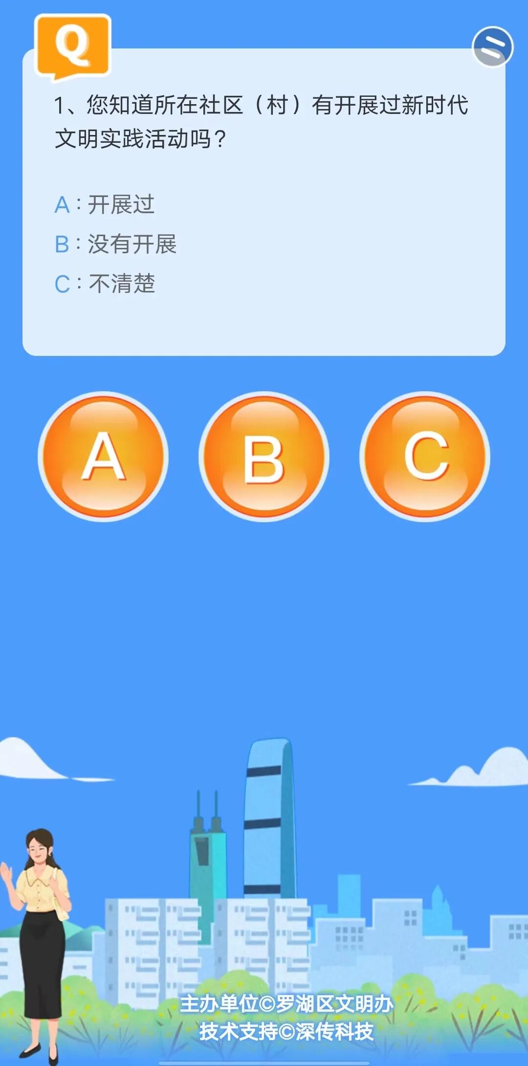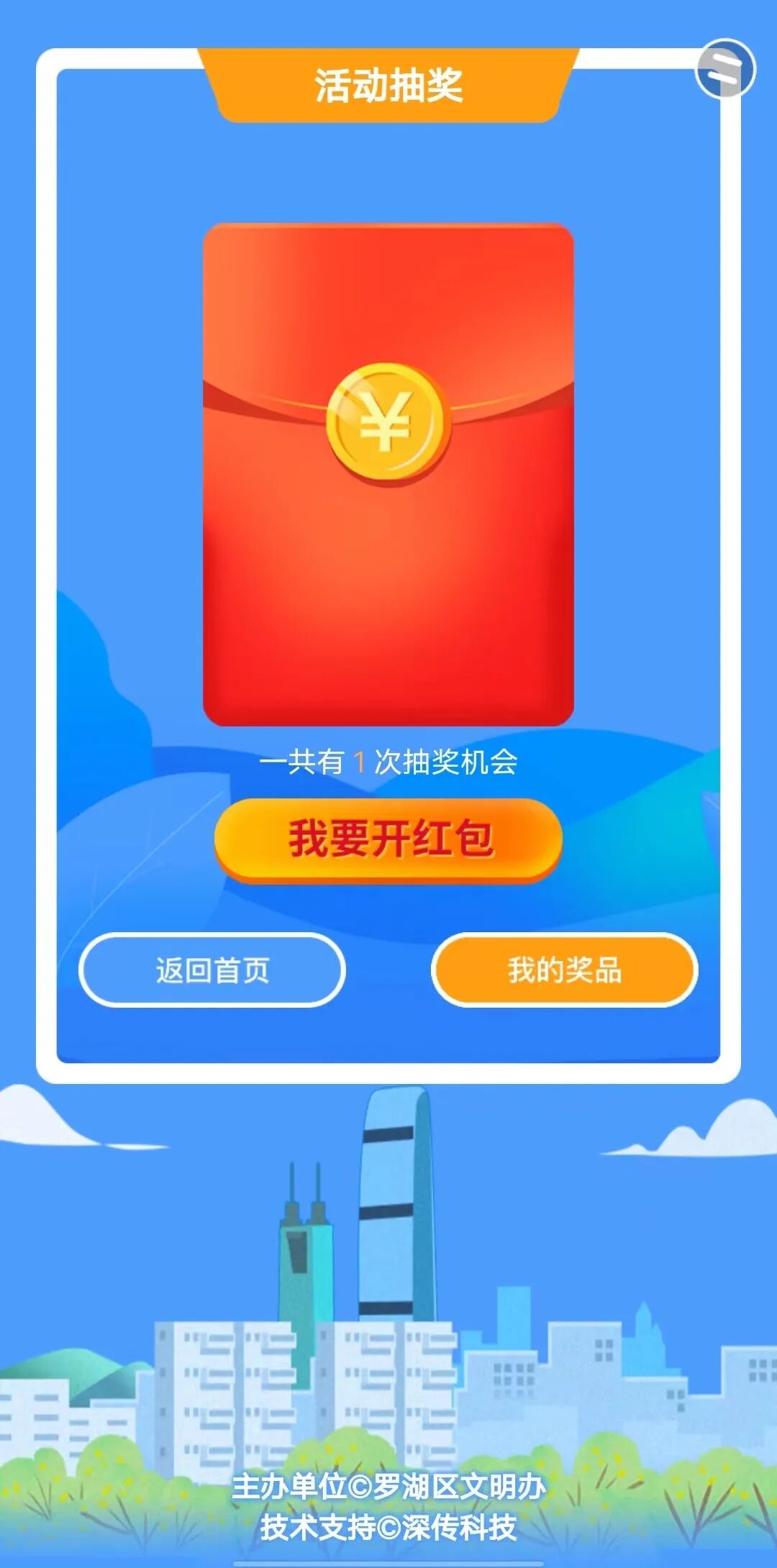 ★在【文明罗湖】通道,用户回答10道与罗湖区文明城市创建工作相关的题目,成功提交即可获得一次抽奖机会;