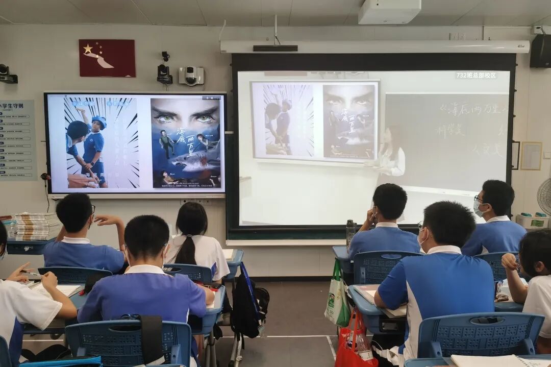 ▫英语学科也同样重视阅读。据英语科组长徐明介绍,英语学科不仅注重培养学生的语言能力和学习能力,还特别培养学生的思维品质和文化意识。除了课堂必修的深圳本地牛津教材外,还会补充综合英语教程——剑桥核心英语教程作为精读教材。另外,为增加对中外文化的理解,提升对优秀文化的鉴赏,学校还提供了大量的原汁原味的课外泛读读物。创新作业有制作英文视频、录制模仿名人演讲视频等,让学生享受每一天的英语作业。