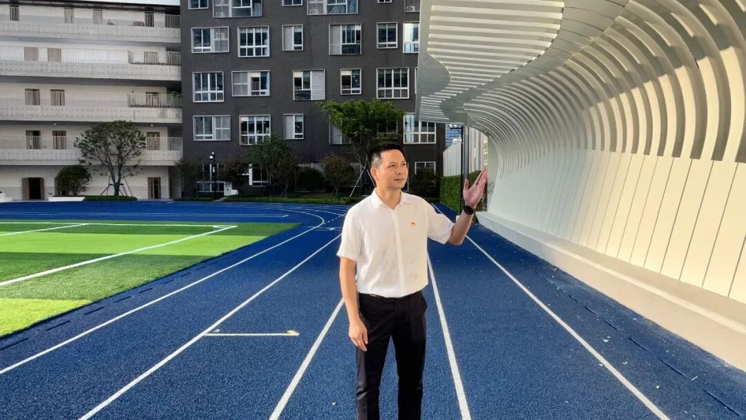 线上开学典礼上,林炳雄作了题为《永远的学长》的讲话。“看到我身后标志性的琴键遮荫墙和跑道,就知道校长正在我们漂亮的操场上和大家见面了。”