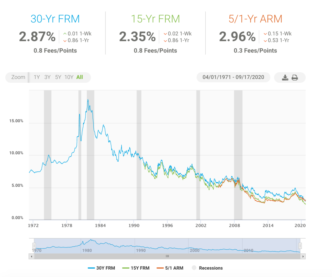 自今年3月份以来房贷利率就一直在不断创下历史新低,上周更是达到了史无前例的2.87%。