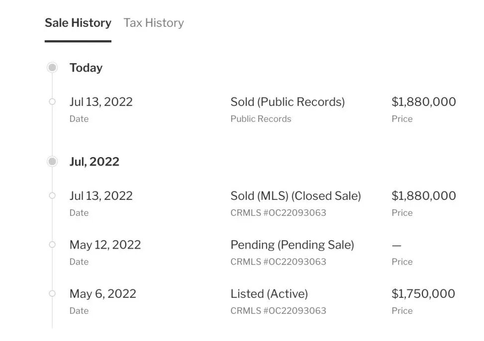 例如这套尔湾的独栋屋,挂牌价$175万,最后成交价$188万,加价$13万。这可能是一种卖房策略,把挂牌价格故意压低来吸引买家。