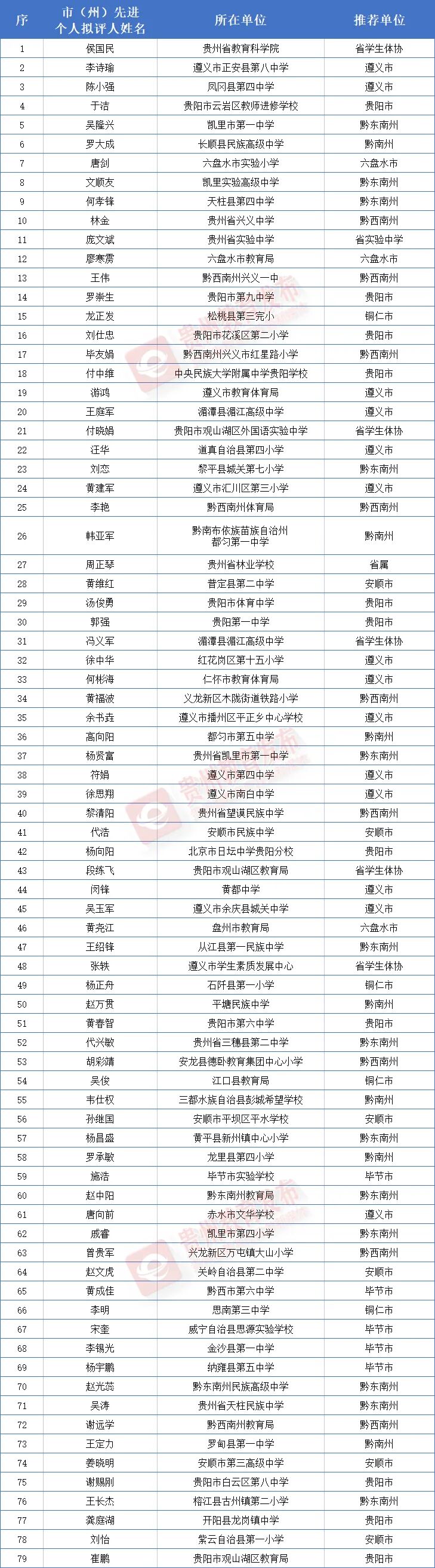 市(州)先进个人拟评人名单