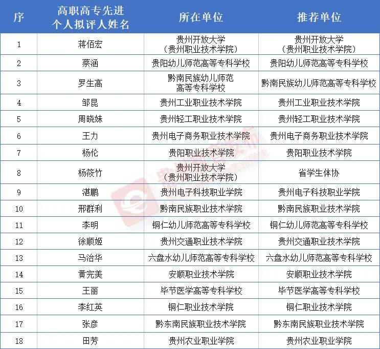高职高专先进个人拟评人名单