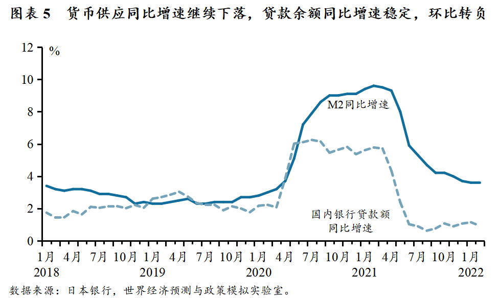 2022年1和2月,日本货币和信用都处于相对稳定区间。2022年1月和2月,日本广义货币(M2)供应量分比为1181.36万亿日元和1179.16万亿日元,同比增速均为3.6%。同比增速较之前有所回落,但降速趋缓,逐步处在稳定区间。1月和2月,日本国内银行贷款总额分别为5469036亿元和5462136亿日元,尽管日本国内银行贷款总额同比仍在增加,但是环比增速已经为负数。
