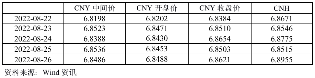 在过去一周时间里,人民币对美元汇率收盘价维持在6.8384-6.8654,继续贬值。