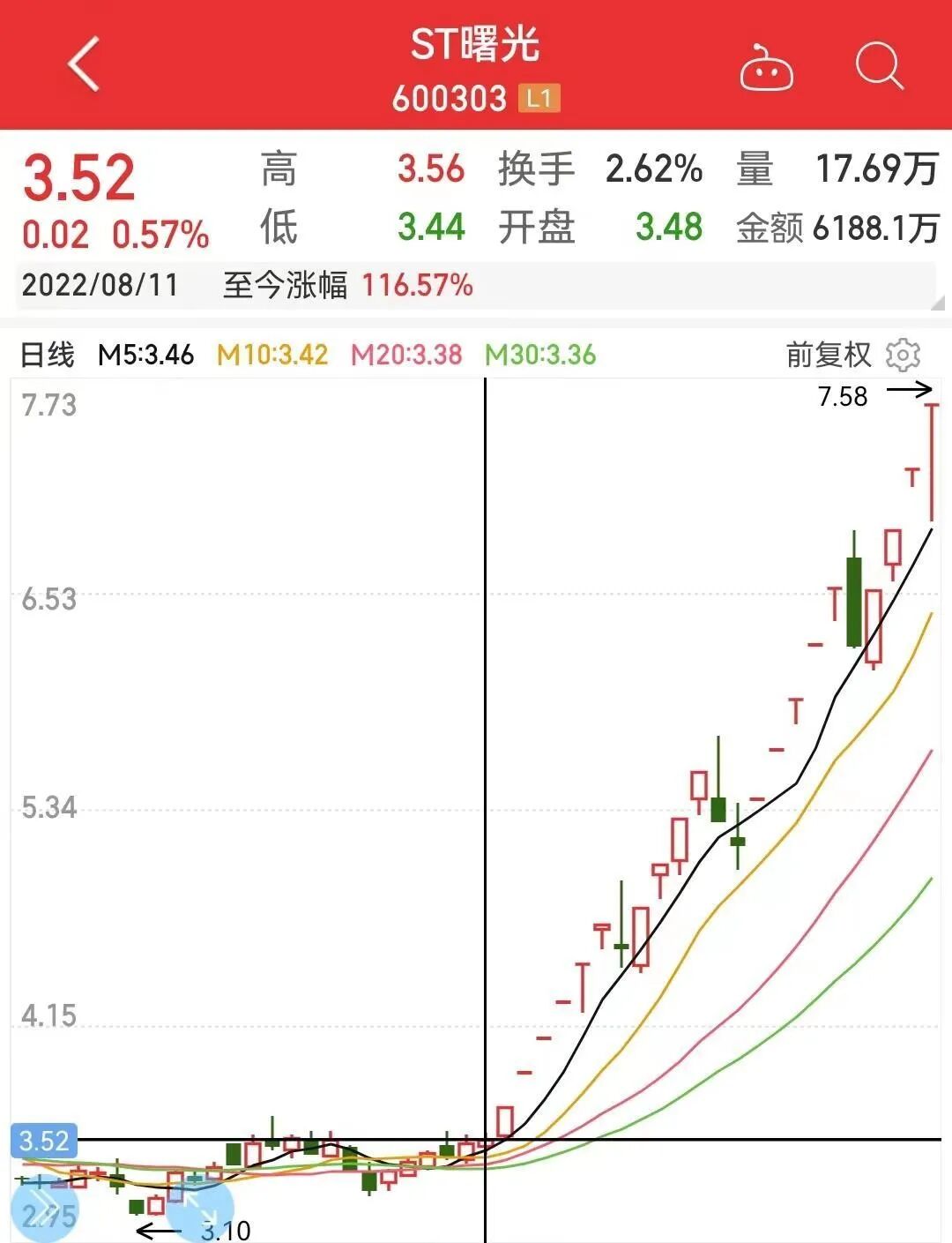 值得注意的是,几乎就在实际控制人失联的同一时间,ST曙光股价开启了涨停模式。