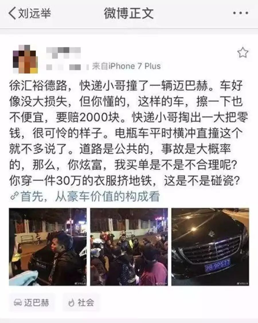 还有之前的,快递小哥擦挂了豪车需要赔偿,不少人居然觉得是豪车“炫富碰瓷”活该?
