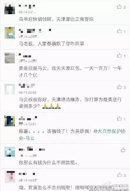 前有天津爆炸被要求捐一个亿的首富马云,后有九寨沟地震被要求给灾区捐一个亿的吴京.....