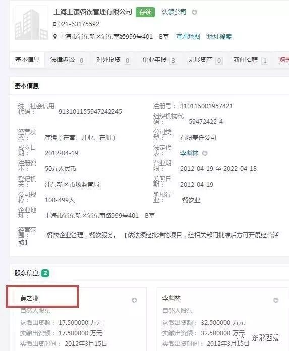 不知道为什么薛之谦的说法跟工商信息不太一样