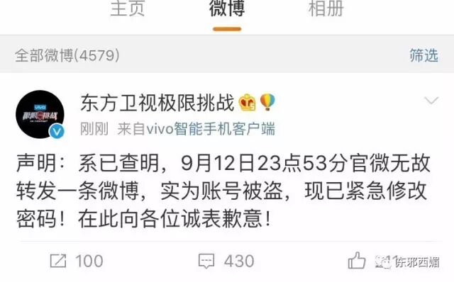 但是迅速删除发声明说被盗号了