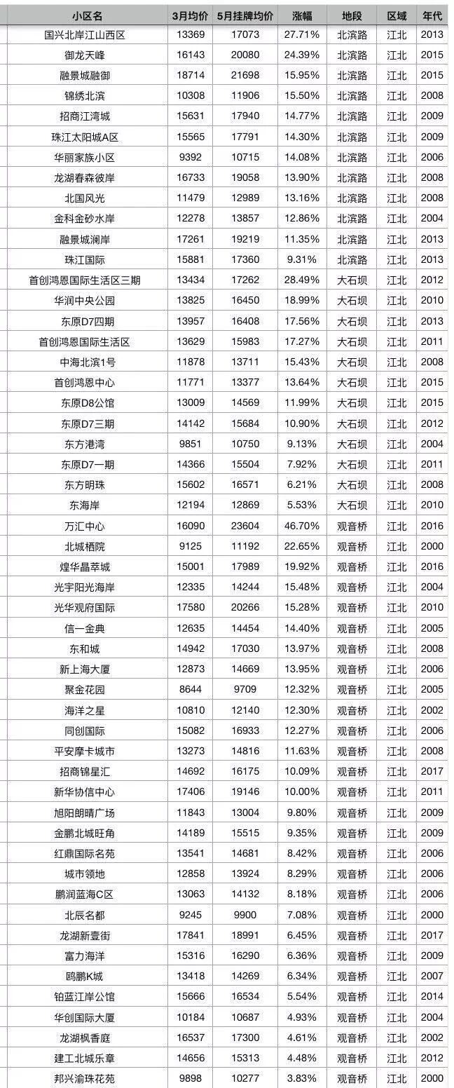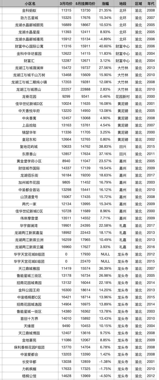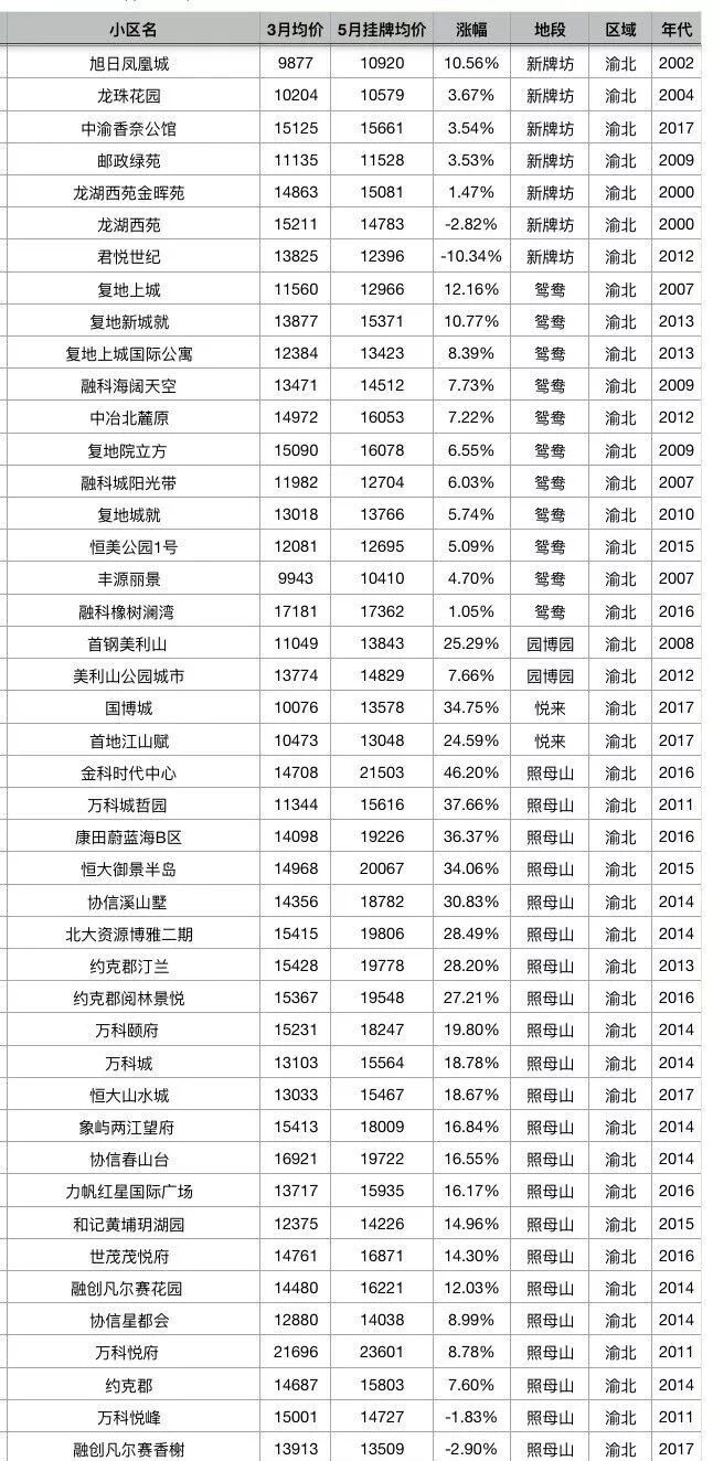 重庆主城区5月最新房价!