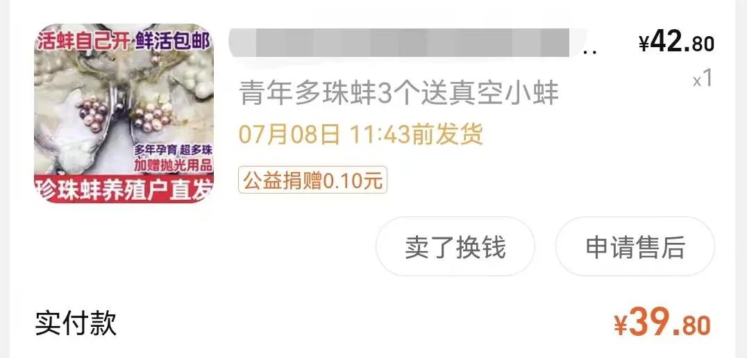 斥资39.8元买了3个珍珠蚌