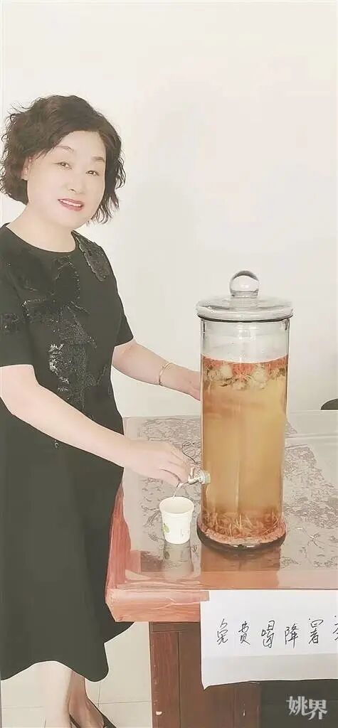 毛桂芬与她制作的凉茶。