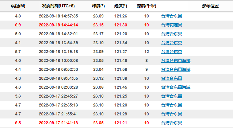 据地震信息播报机器人,2022年1月1日至今,我国共发生三级以上地震533次,其中3.0到3.9级388次,4.0到4.9级105次,5.0到5.9级30次,6.0级到6.9级10次,7.0级以上0次,最大地震分别是1月8日在青海海北州门源县发生的6.9级地震和9月18日在台湾花莲县发生的6.9级地震。