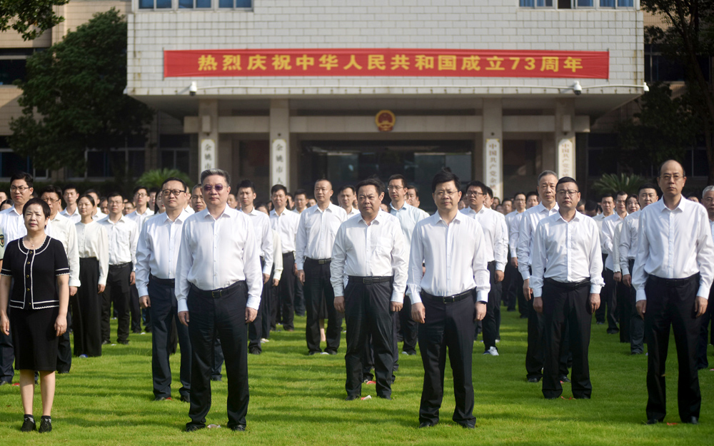 上午8时15分,升旗仪式正式开始。英姿飒爽的国旗护卫队队员迈着矫健的步伐,庄严走向旗台。当雄壮的《义勇军进行曲》响起,升旗手振臂一挥,鲜艳的五星红旗迎风招展,冉冉升起。全体人员昂首肃立,向国旗庄严行注目礼,衷心祝愿祖国更加繁荣富强,祝愿人民生活更加幸福美好。