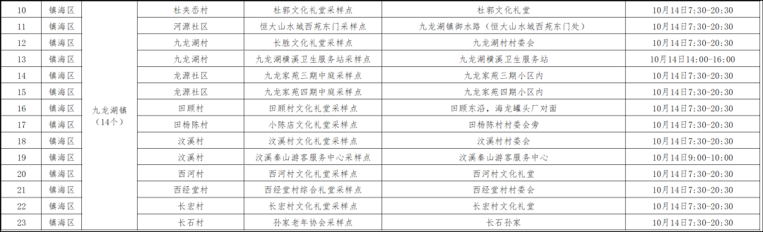 15 | 梅墟街道 | 梅墟社区 | 梅墟街道社区卫生服务中心北侧空地 | 上午07:00-11:00 下午13:30-16:30 晚上18:00-21:30 |
