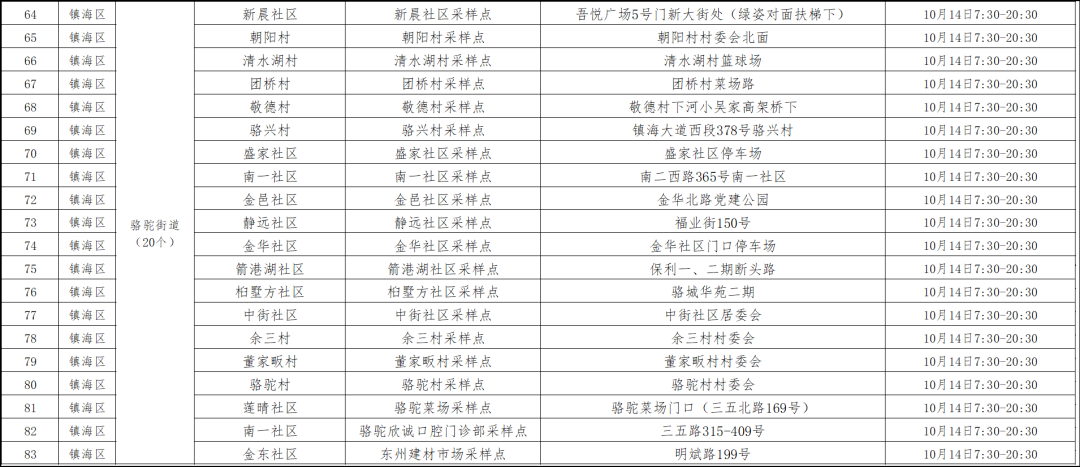 14 | 新明街道 | 新晖社区 | 九五商务大厦架空层(江南路598号) | 7:00-10:00 |