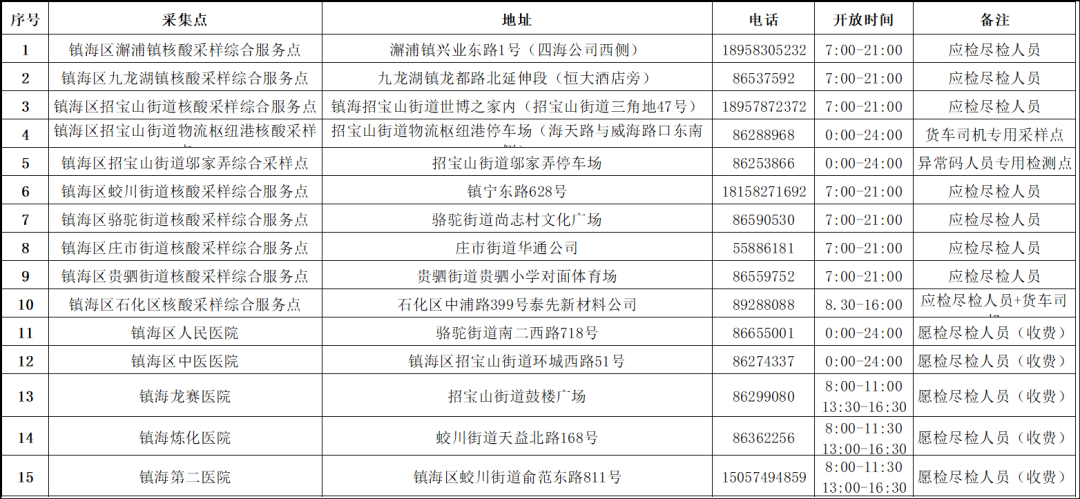 15 | 聚贤街道 | 菁华社区 | 凌云公寓东区 (晶辉路77号) | 7:00-10:00 |