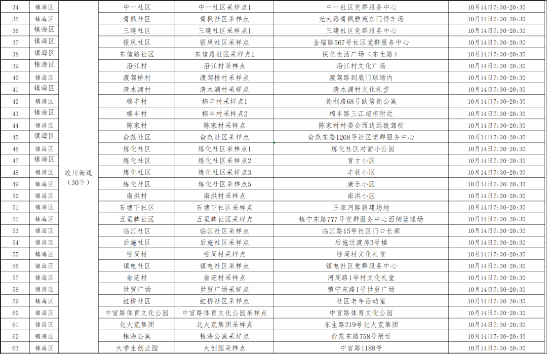 5 | 聚贤街道 | 广贤社区 | 甬康体检门口 | 18:00-20:30 |