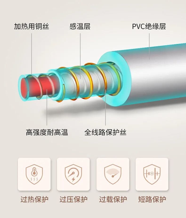 不管毯子上任意一点都好,只要是过热、过压、过载、短路,它都会自动断电保护,用起来更放心。