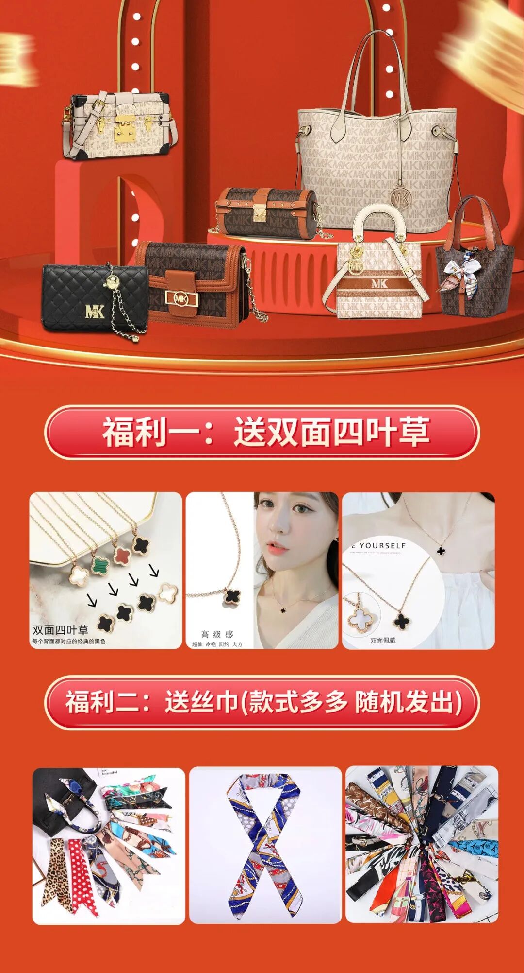 买一个我们的MK包包,送双面四叶草项链和一条丝巾(随机发出),