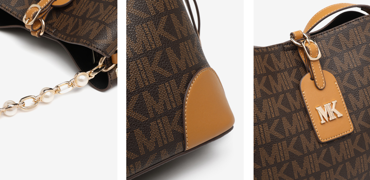 形如其名,水桶包的名字其实非常形象,看上去就像个小水桶。实用性也不错,所以一直以来深受不少女孩们的喜爱~配备2条包带,可斜跨、可单肩、可手提,三种用法,百变风格~再也不用纠结买什么包包啦!其中一条包带上点缀了三颗装饰珍珠,瞬间就让它在一众水桶包中脱颖而出,非常有自己的风格。![]()