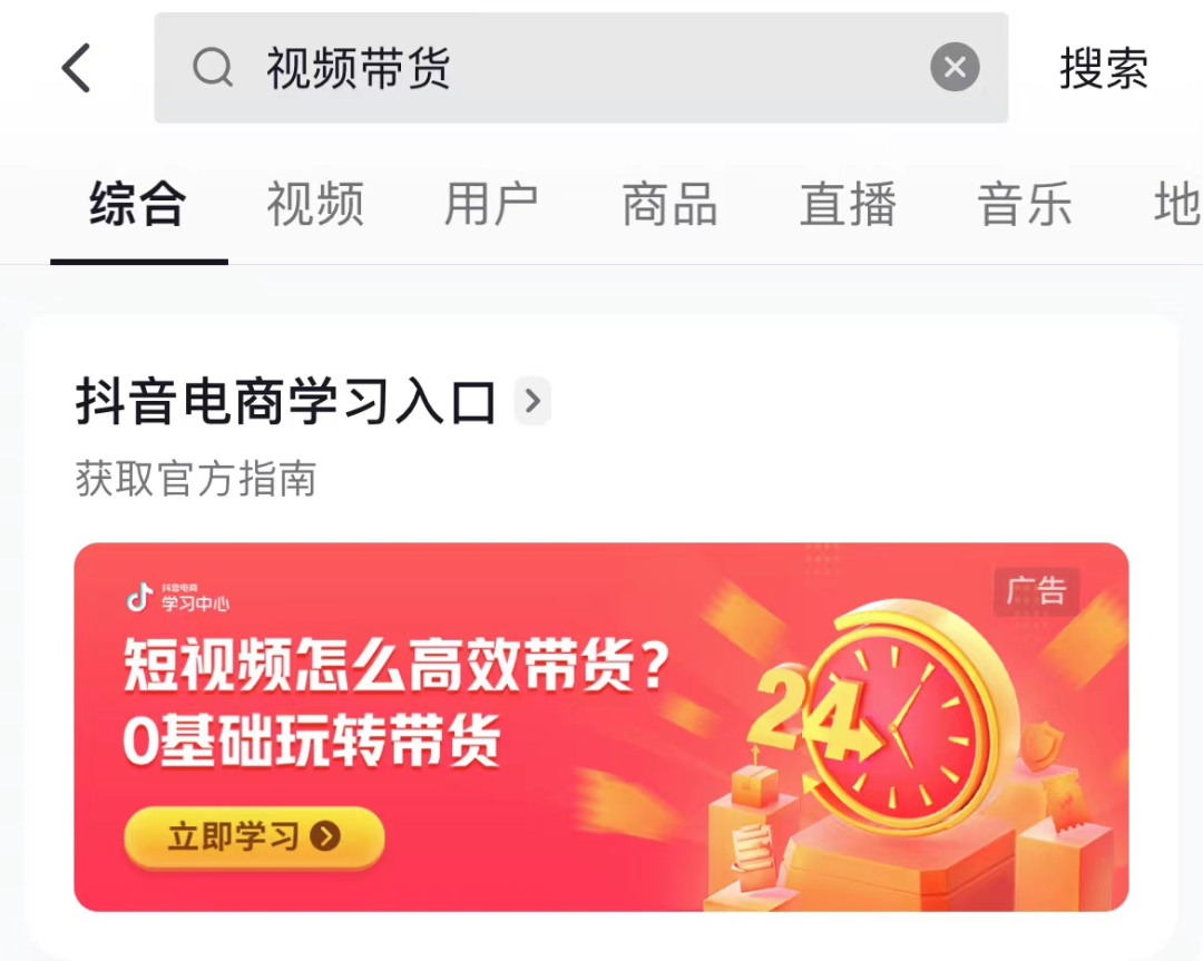 抖音App搜索“视频带货”页