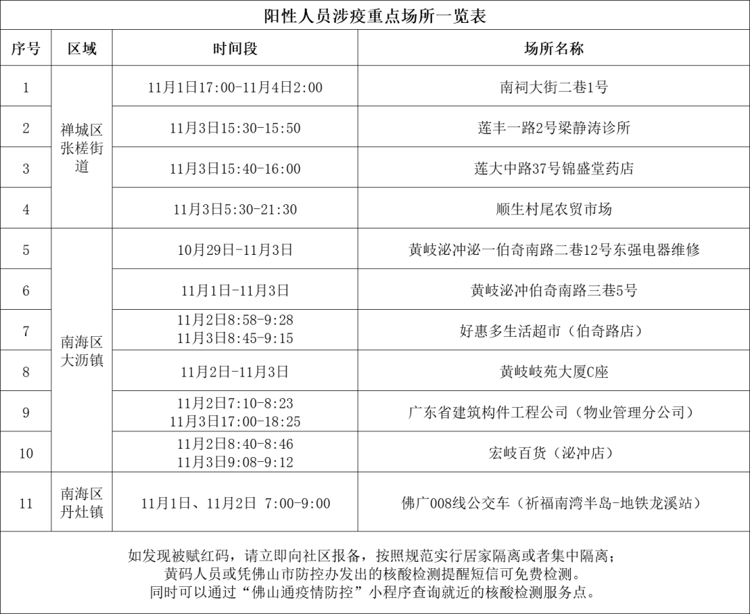 个案4居住在南海区大沥镇,到发热门诊就诊,11月4日核酸检测阳性。
