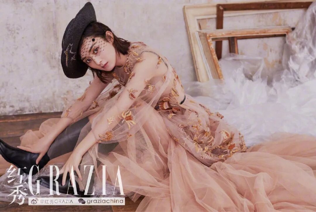 以素净面容登封的小赵也丝毫不虚,无需浓艳妆容依然表现力十足,尽显本真天然之美。烟粉色纱裙温柔梦幻、礼帽面纱性感危险、靴子英姿飒爽,几种矛盾气质被赵丽颖糅合得恰到好处。