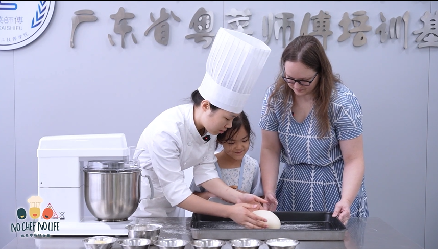这一次,刘宇婷师傅与Sara母女相约在广州市粤菜师傅培训基地,用菠萝包和天鹅酥这两道经典的粤式点心,开启了一趟“甜蜜之旅”。