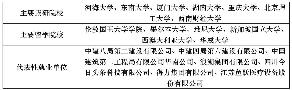 市场经济环境下竞争日益激烈,市场营销的地位与作用日益凸显,市场营销专业学生就业前景广阔。毕业生既可从事政府、社会团体、工商企业的品牌、形象塑造和推广,也可从事工商企业的产品和服务营销工作,还可以在咨询、调研、媒体机构一展宏图。河海营销学子广泛活跃在这些领域,既有在全球五百强企业、政府部门任职的,也有在美国西北大学、伦敦大学、中国人民大学、天津大学等海内外名校进行深造的。