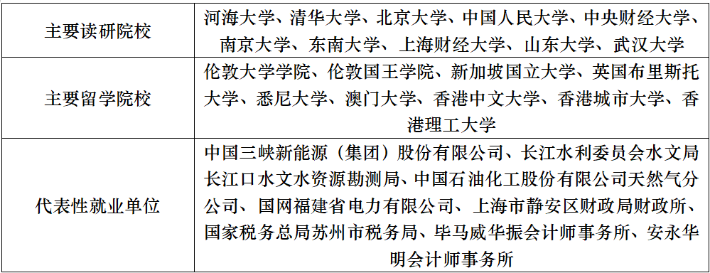 欢迎各位有志于从事财务和金融行业的学弟学妹加入河海大学财务管理专业的大家庭,在未来用自身所学做资本市场的“守夜人”、企业价值管理的践行者!桃李不言,下自成蹊,衷心祝福母校、学院与财务金融系欣欣向荣、蓬勃生长!