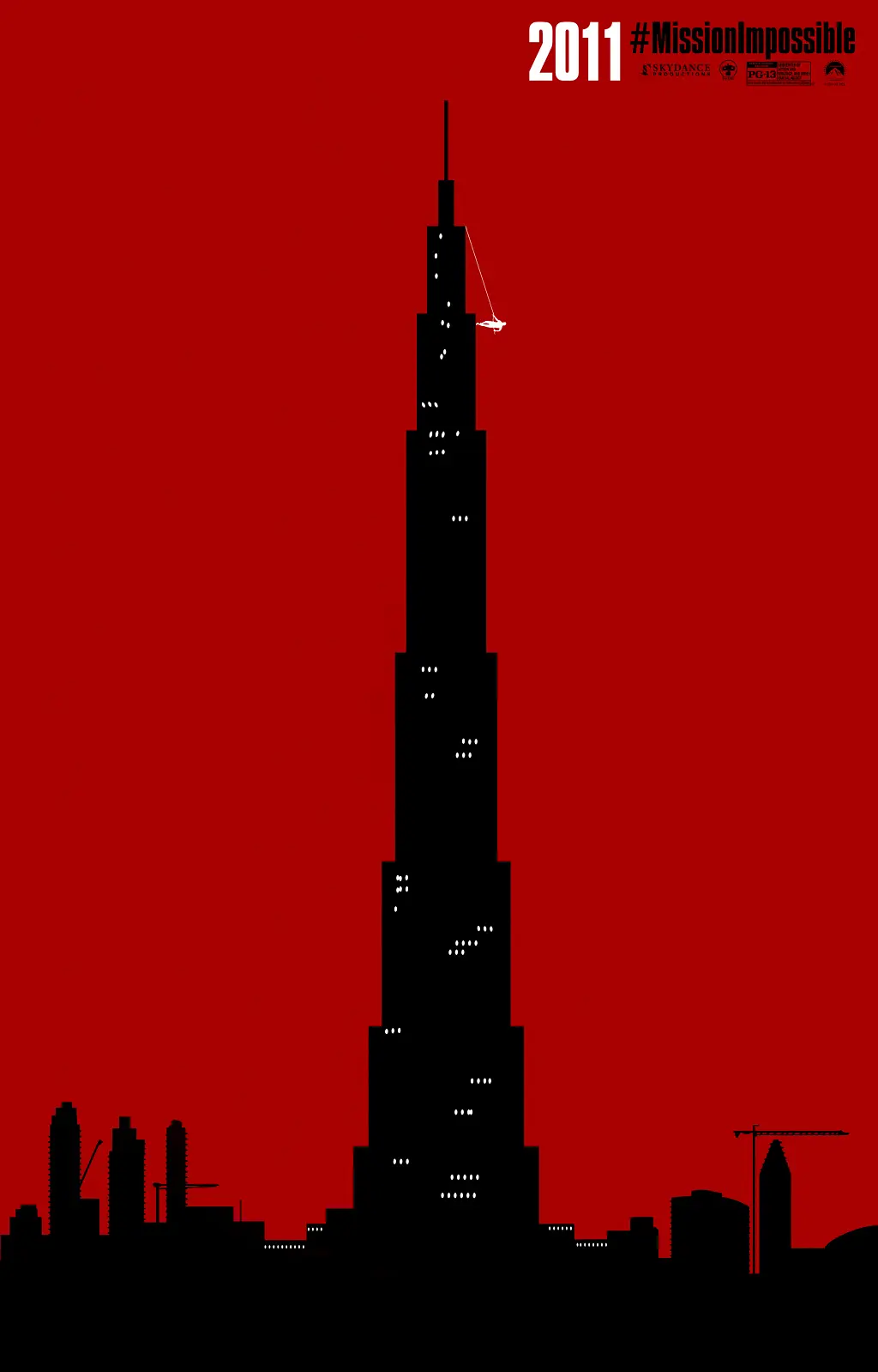 《碟中谍4:幽灵协议》中阿汤哥爬迪拜塔,亲身上阵500米高空漫步。讲述俄罗斯克里姆林宫诡异被炸,而特工伊森·亨特所在的小组被莫名其妙解散,他们的首要任务是洗去克里姆林宫爆炸事件的涉案嫌疑,同时阻止俄美战争的爆发。