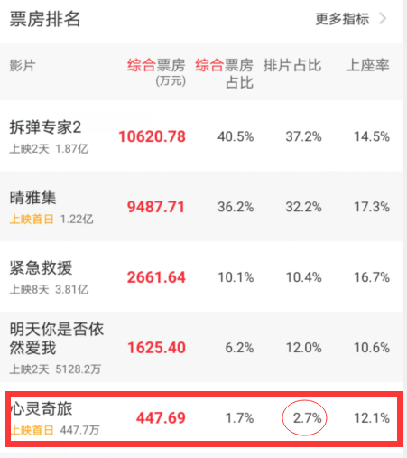 上映首日,全国只有2.7%的排片(今天5.0%),县级院线几乎没有排片,市级院线一天也就一两场。