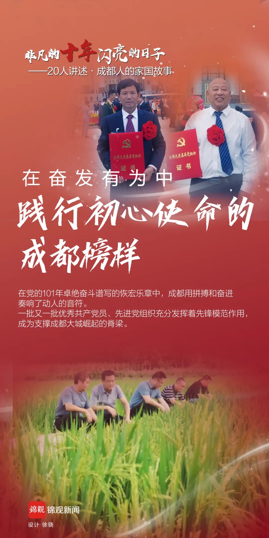 在党的101年卓绝奋斗谱写的恢宏乐章中,成都用拼搏和奋进奏响了动人的音符。一批又一批优秀共产党员、先进党组织充分发挥着先锋模范作用,成为支撑成都大城崛起的脊梁。