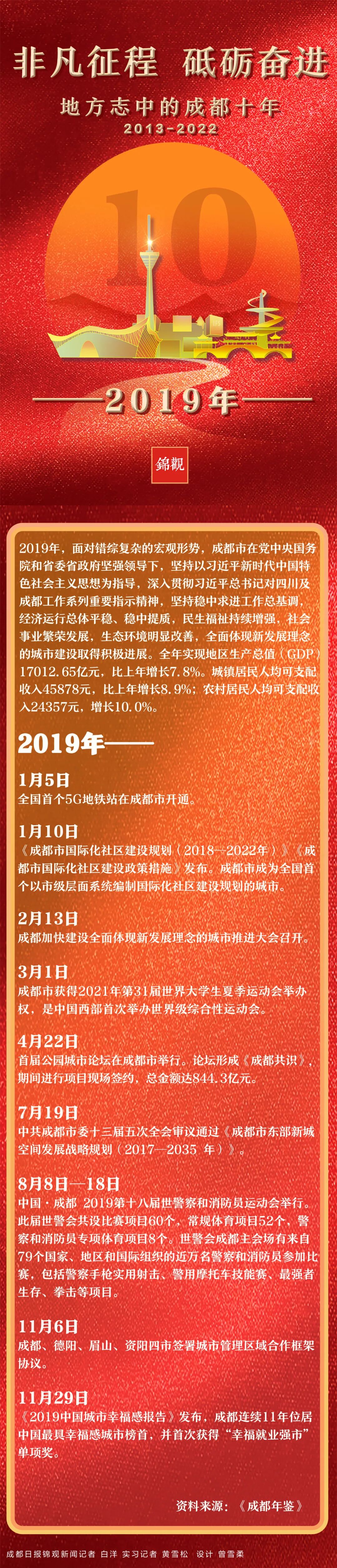 我们的时代是先进典型辈出的时代,崇高事业的赓续传承伴随着人们前赴后继。十年间的成都,迈入超大城市行列,极核主干能级有效提升,群众的获得感、幸福感、安全感更加充实、更有保障、更可持续。