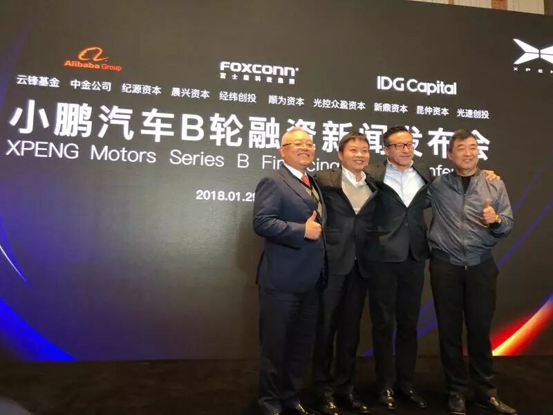 今年1月29日,小鹏汽车在香港召开融资新闻发布会,宣布获得总额22亿元人民币的B轮融资。阿里巴巴集团、富士康和IDG资本联合领投,云峰基金、Apoletto和中金公司跟投、A+轮注资的纪源资本、晨兴资本、经纬创投也现身投资机构名单。