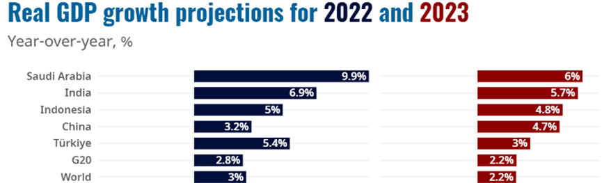 不过近年来国际油价在经历了极端负值之后逐渐回升,由于负油价对美国页岩油生产商的资产负债表形成了严重打击,美国国内的原油产量近两年回升并不明显。以沙特为首的传统油气国(OPEC+)又重新获得了对国际油价的主导权,油价近两年的波动中枢逐渐上行,并重回80美元/桶以上的高油价区域。今年上半年俄乌冲突爆发之后,国际油价一度冲上130美元/桶的历史高位,让产油国再度过上了好日子。受到油价上行带动,沙特今年第一季度的经济增长率为9.9%,在全球主要经济体中已经属于领先位置。到了第二季度,沙特经济增速更是扩大至12.2%。上半年沙特名义GDP达到了19928.88亿里亚尔(约5314.37亿美元),超过荷兰升至全球第17名。根据经合组织(OECD)的最新预测,2022年全球主要经济体中,经济增长率最高的可能不再是印度,也不是中国,将是沙特阿拉伯(全年增速约10%)。到今年年底,沙特GDP规模很可能超过1万亿美元。如果光看GDP数据,你感受不到沙特在石油上赚了多少钱的话,沙特国家石油公司(沙特阿美)的财报数据或许更加直观一些。根据最新财报,沙特阿美今年第三季度净利润416亿美元(约合3027亿人民币,接近工商银行一年的净利润),前三季度净利润约900亿美元。而世界市值最大公司——苹果最近一个财年的净利润也不过997亿美元(约7261亿人民币)。按照目前的油价,今年沙特阿美大概率会成为世界上最赚钱的公司。当油价重回沙特的财政平衡线之上,那沙特国民的日子自然也好过了不少。至于世界杯爆冷战胜阿根廷,那自然更是锦上添花,“喜上加喜”了。