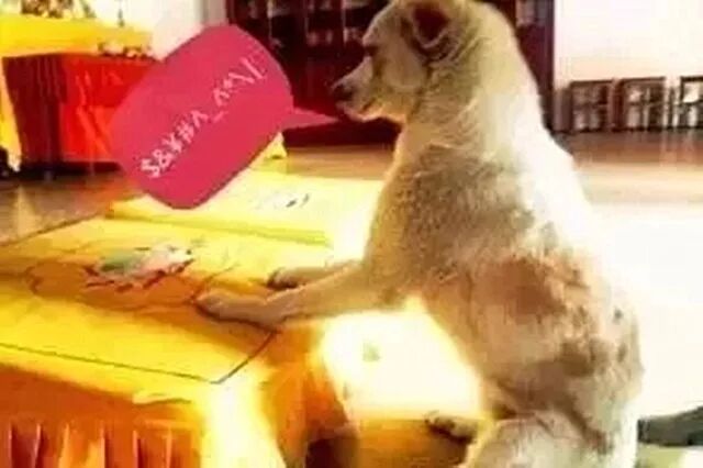 狗狗非常有灵性,坚持吃素,每次看到僧人,也会顶礼磕头。